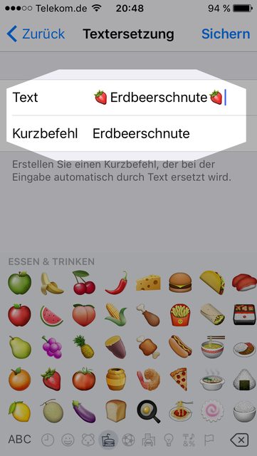 Tippe in die zweite Zeile bei Kurzbefehl eine sinnige Abkürzung des Namens ohne Sonderzeichen ein.